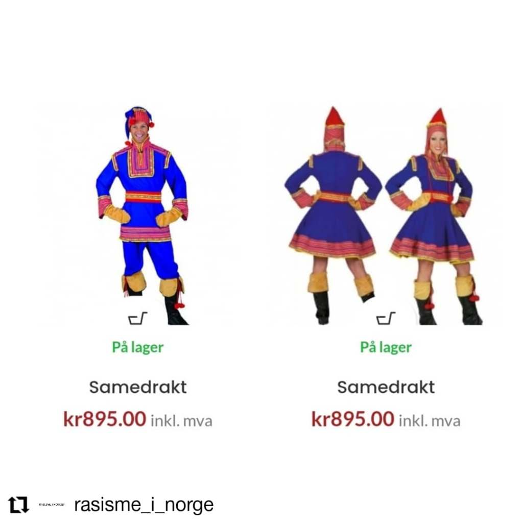Thus, when the same costume company that marketed the «Indian» costume worn by Siv Jensen began advertising a «sami costume», SoMe blew up with accusations of cultural appropriation. In face of these accusations, the company – that is making a hefty profit selling costumes meant to represent cultures and people considered «exotic» and or «foreign» – replied that there was no intent to harm. In fact, the company wished to honor the Sámi culture, and added that they also sold » costumes of cowboys, Indians, Mexicans, Hawaiians without it ever being a cause for concern». [17]